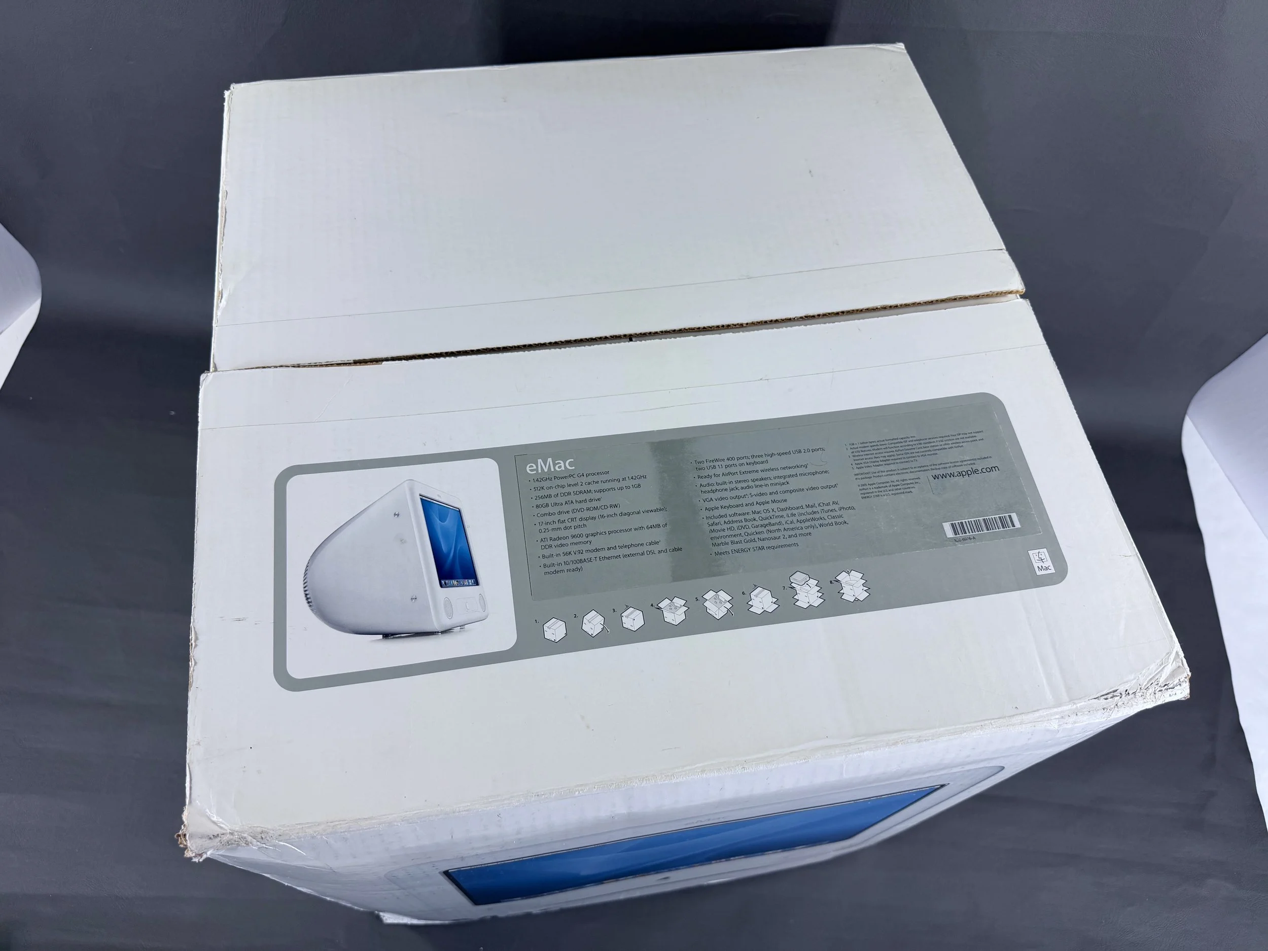 The eMac represents the final CRT of any kind that Apple produced. This particular machine is the last and fastest model in the eMac line, featuring a 1.42 GHz G4 processor.