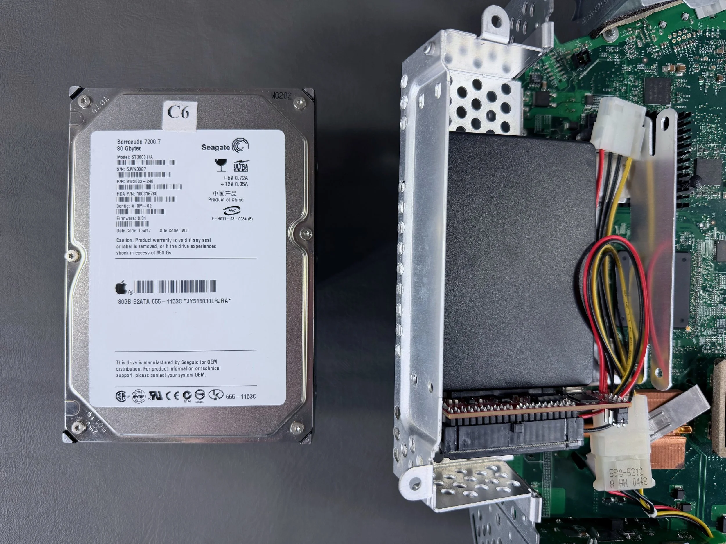 Original HDD (left) and the new SSD (right). This SSD was a plug-and-play solution with the original IDE interface.