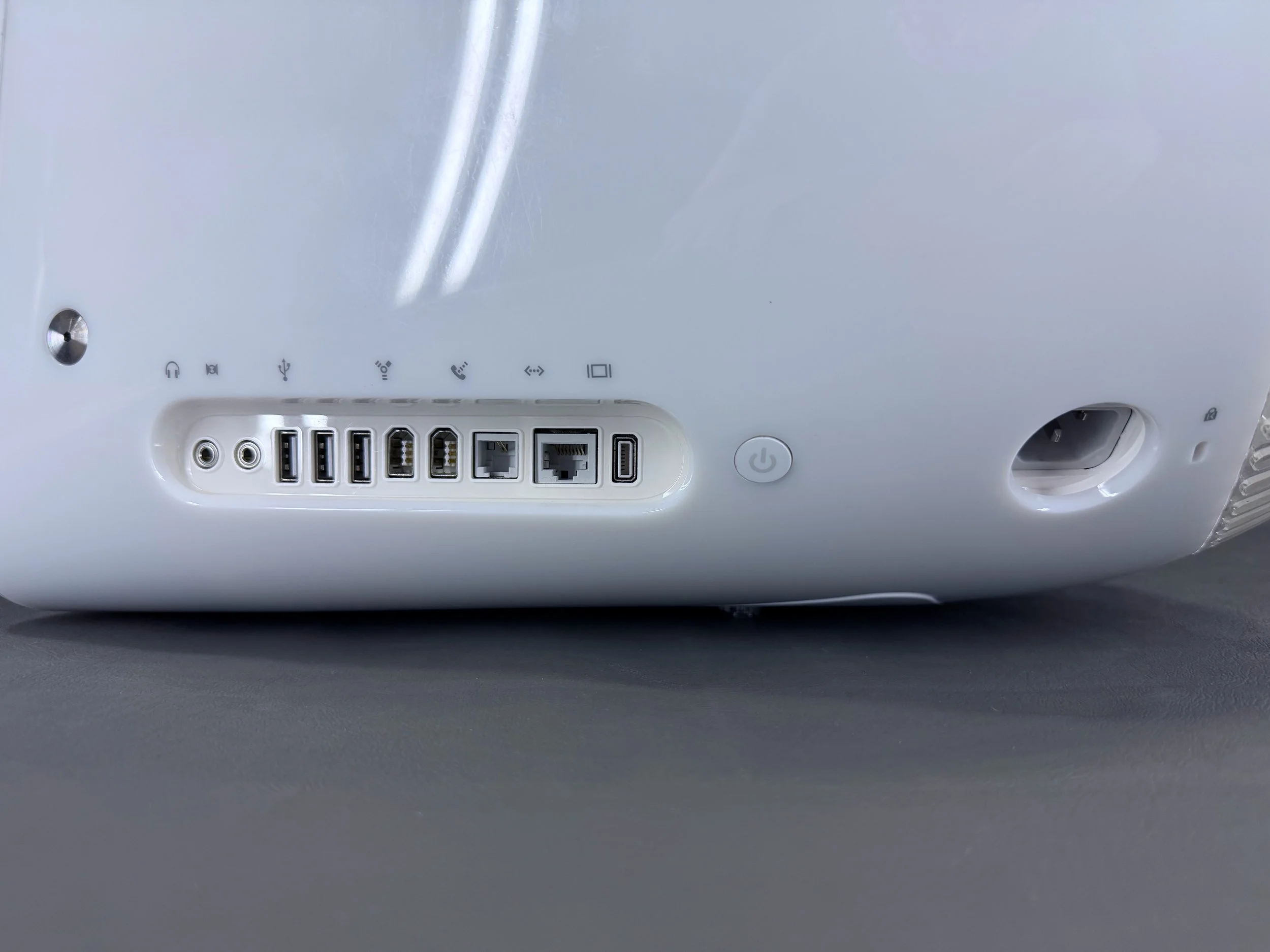 The ports are aligned on the lower right side like the iMac G3.