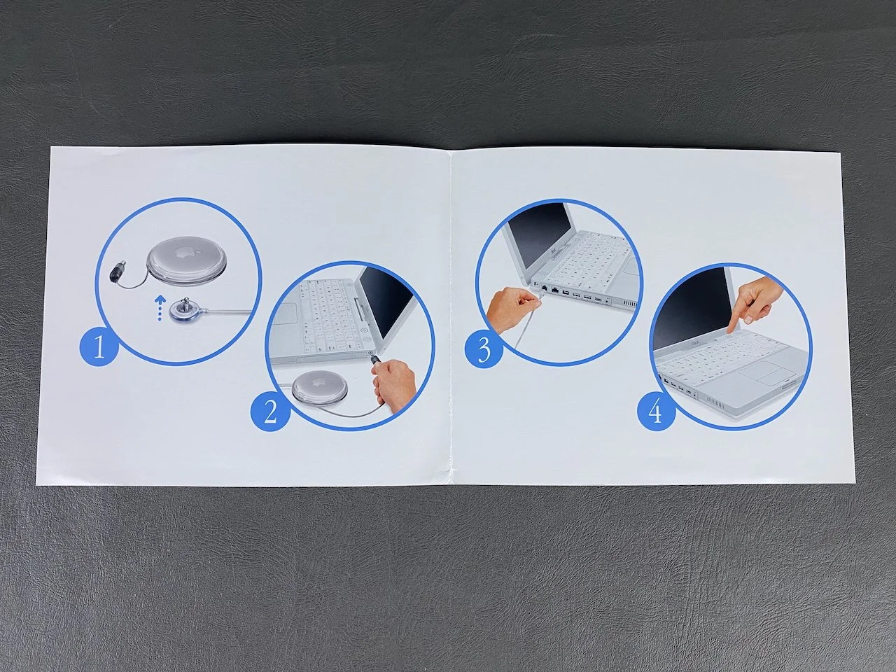 Inside the iBook “Getting Started” guide. Pretty simple! This is very similar to the guides that shipped with other machines like the iMac.