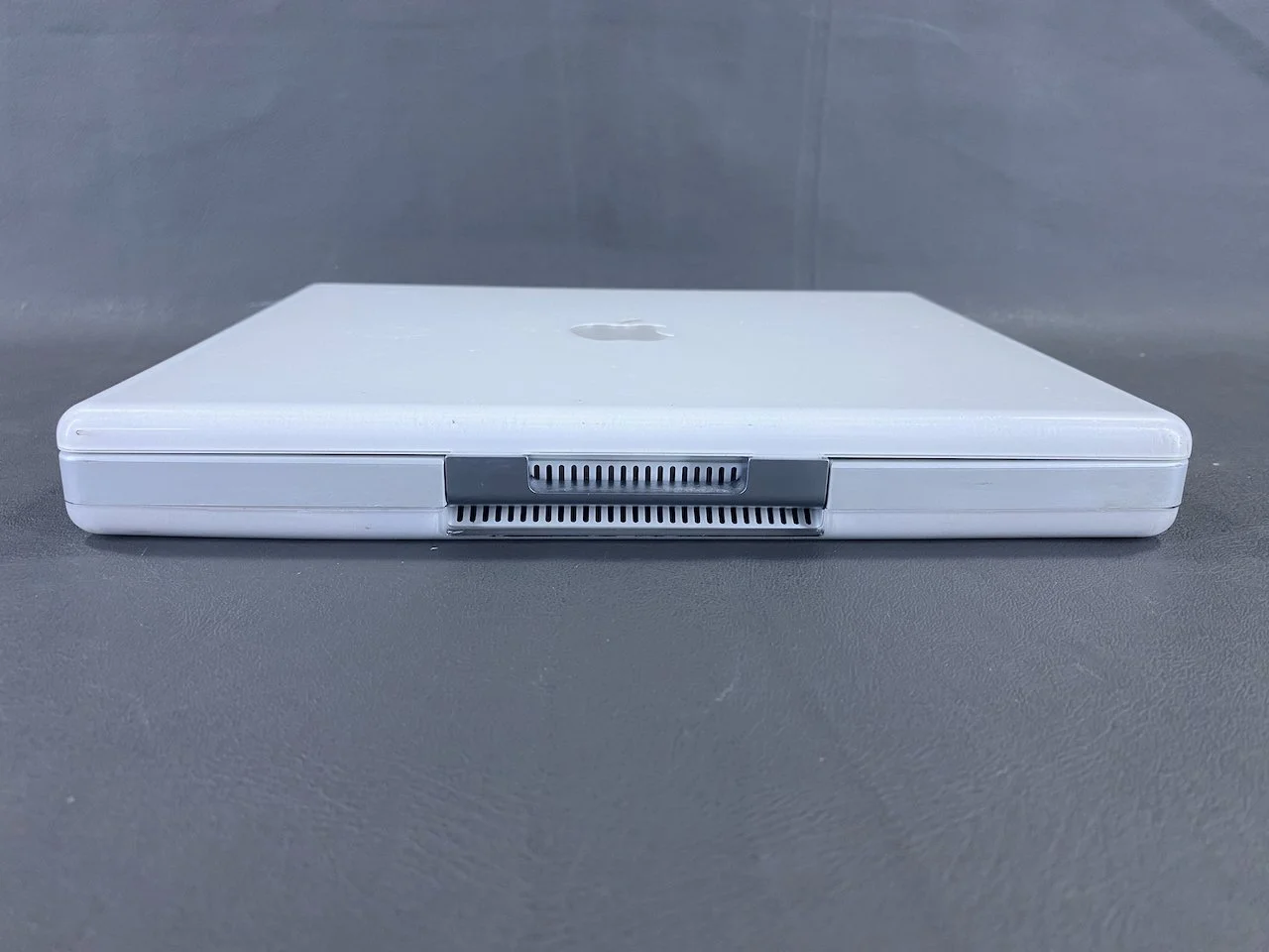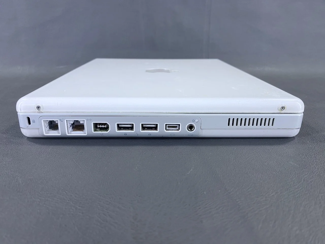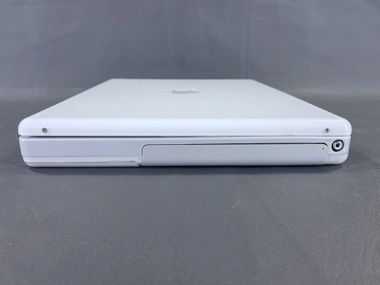This particular model is the original 500 MHz ‘Snow’ iBook which directly succeeded the final clamshell iBook G3s.