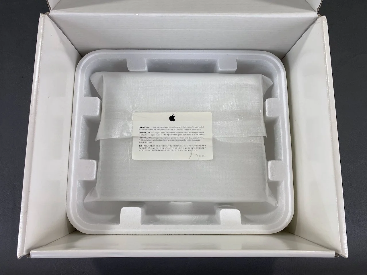 This unit is in excellent condition, and is complete with all the original packaging, power adapter, software CDs, documentation, and Apple stickers.