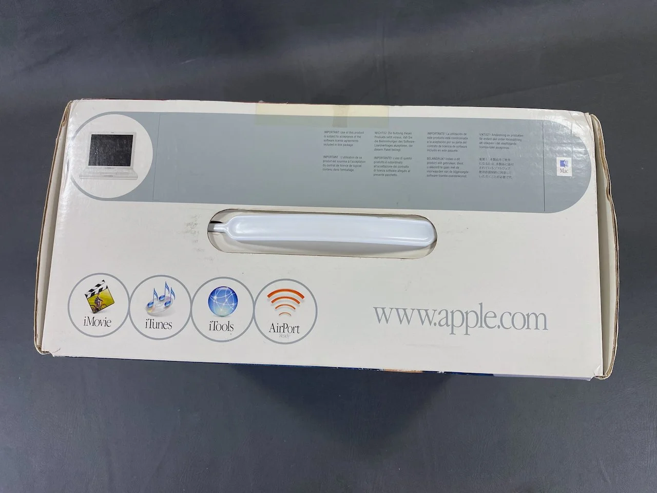 This is a custom-ordered system that originally came with an upgraded 20GB hard drive, a “combo” optical drive, and a factory-installed AirPort card.