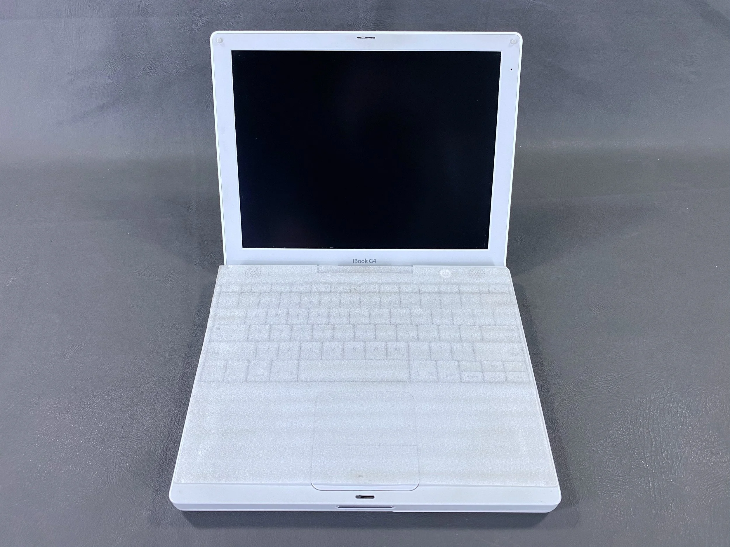 This particular machine is the 1.33 GHz 12-inch model released mid-2005, from the last generation of iBooks before the introduction of the Intel-based MacBook line. This makes it the last, and fastest, 12” iBook that Apple ever made. This iBook (and the 14” model released alongside it) are notable for featuring a scrolling trackpad and a sudden motion sensor, which parks the hard drive head if a fall is detected - neither of these features were present on older iBooks. These were also the first and only iBooks to feature both AirPort Extreme and Bluetooth as standard equipment.