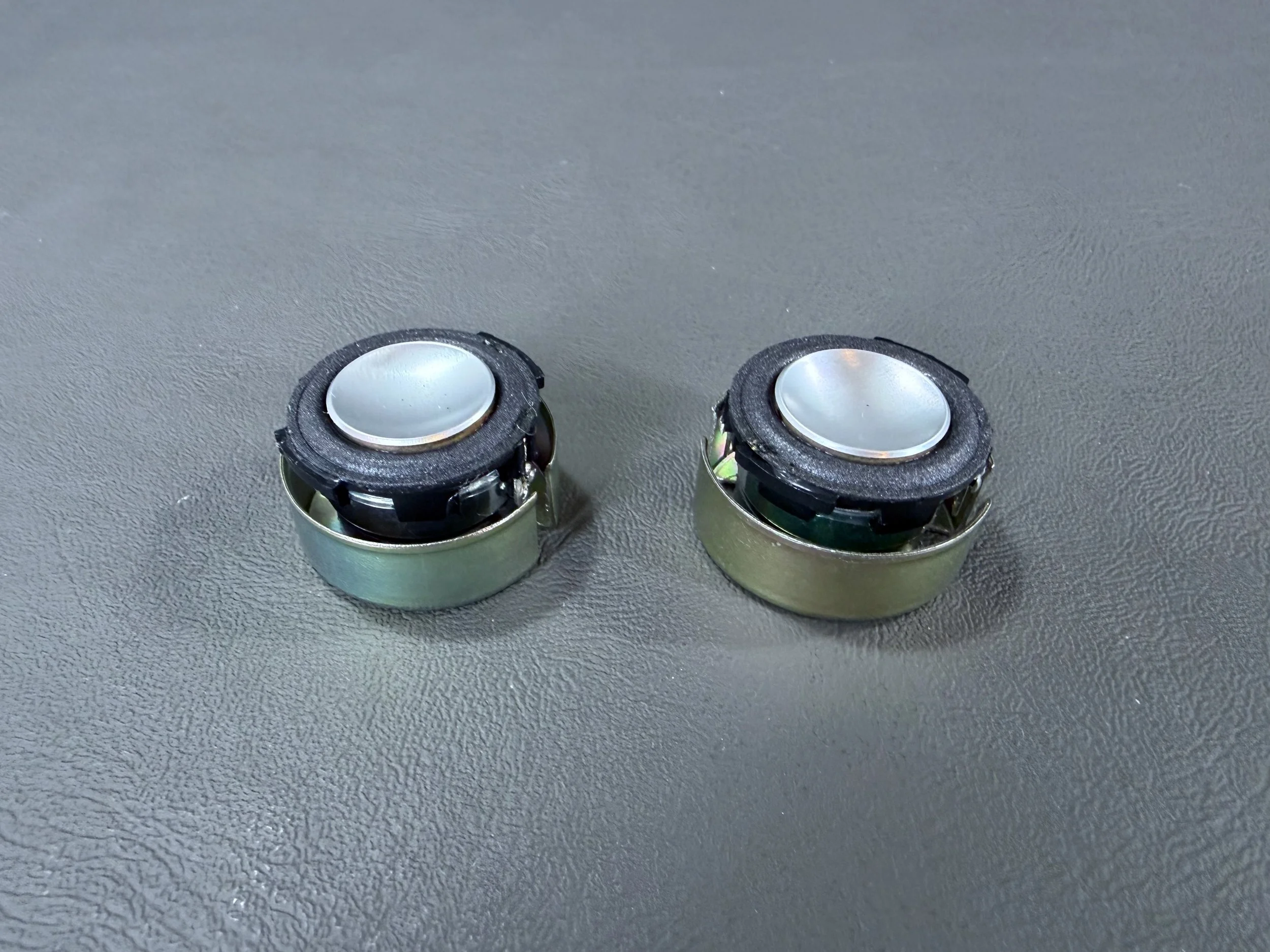 New drivers with the magnets and shields installed, ready to be reinstalled into their enclosures. I used a dab of superglue to reattach everything back together. Be sure to line up the spade connector tabs on the new drivers with the cutouts in the sides of the shield so the connections can be made, otherwise the connectors will be covered by the sides of the shield.