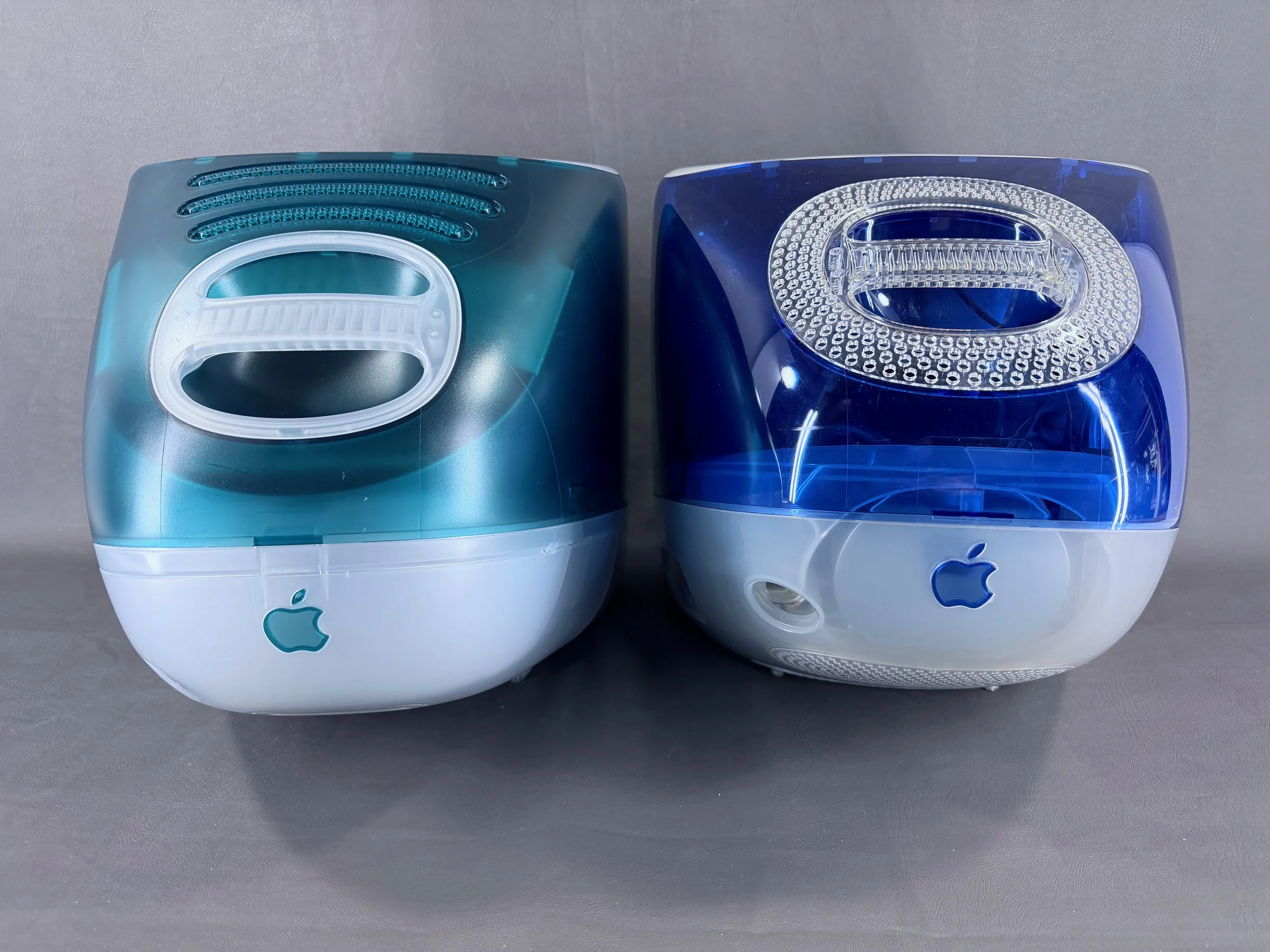 Tray-loading (Bondi Blue) iMac, left, next to a slot-loading (Indigo) iMac, right. When compared side by side, there are quite a few noticeable differences between the two generations.