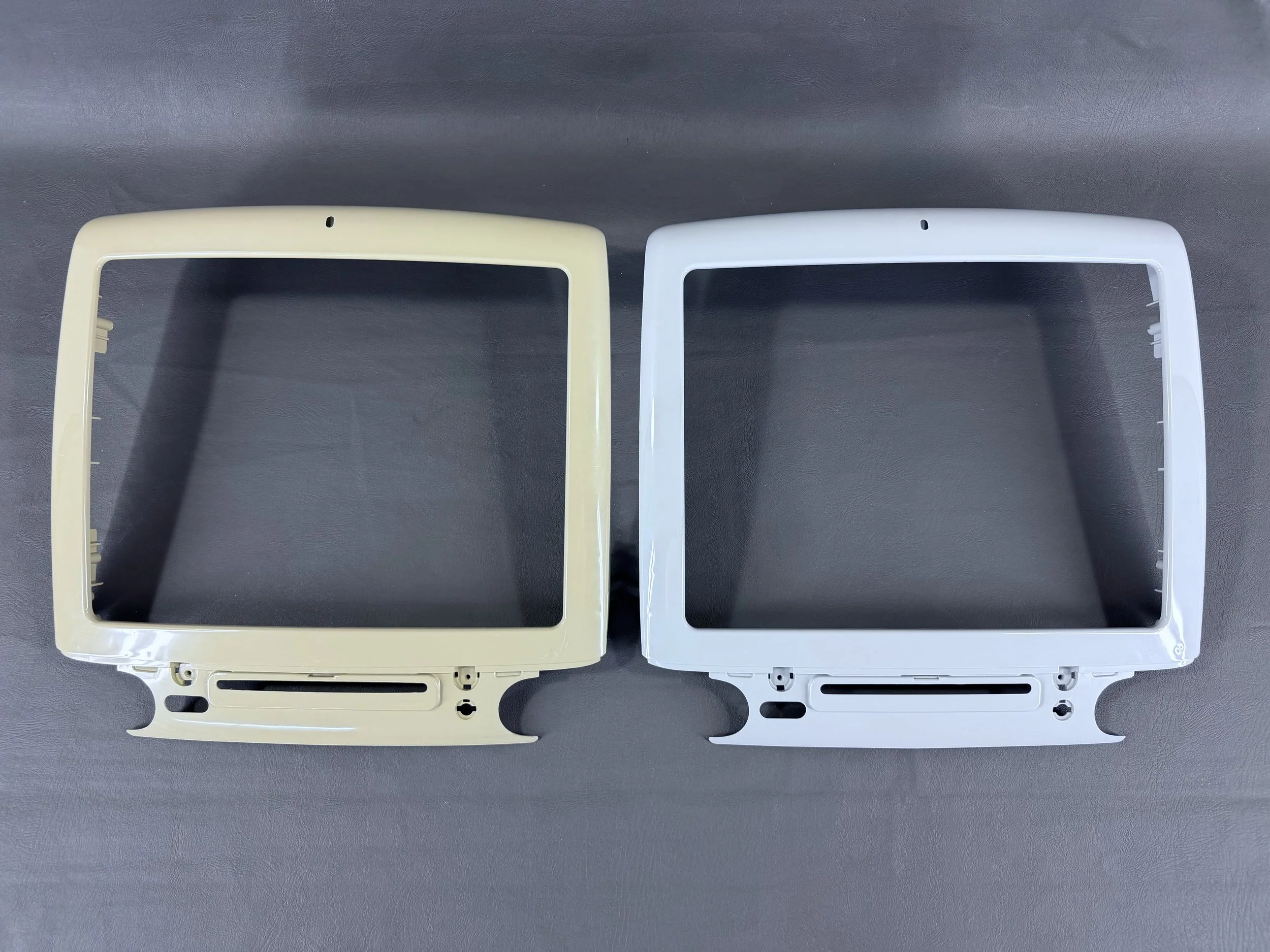 The original bezel (left) alongside the new one (right). In addition to the structural importance, this part is also visible through the translucent outer bezel so it impacts the iMac’s overall apperance.