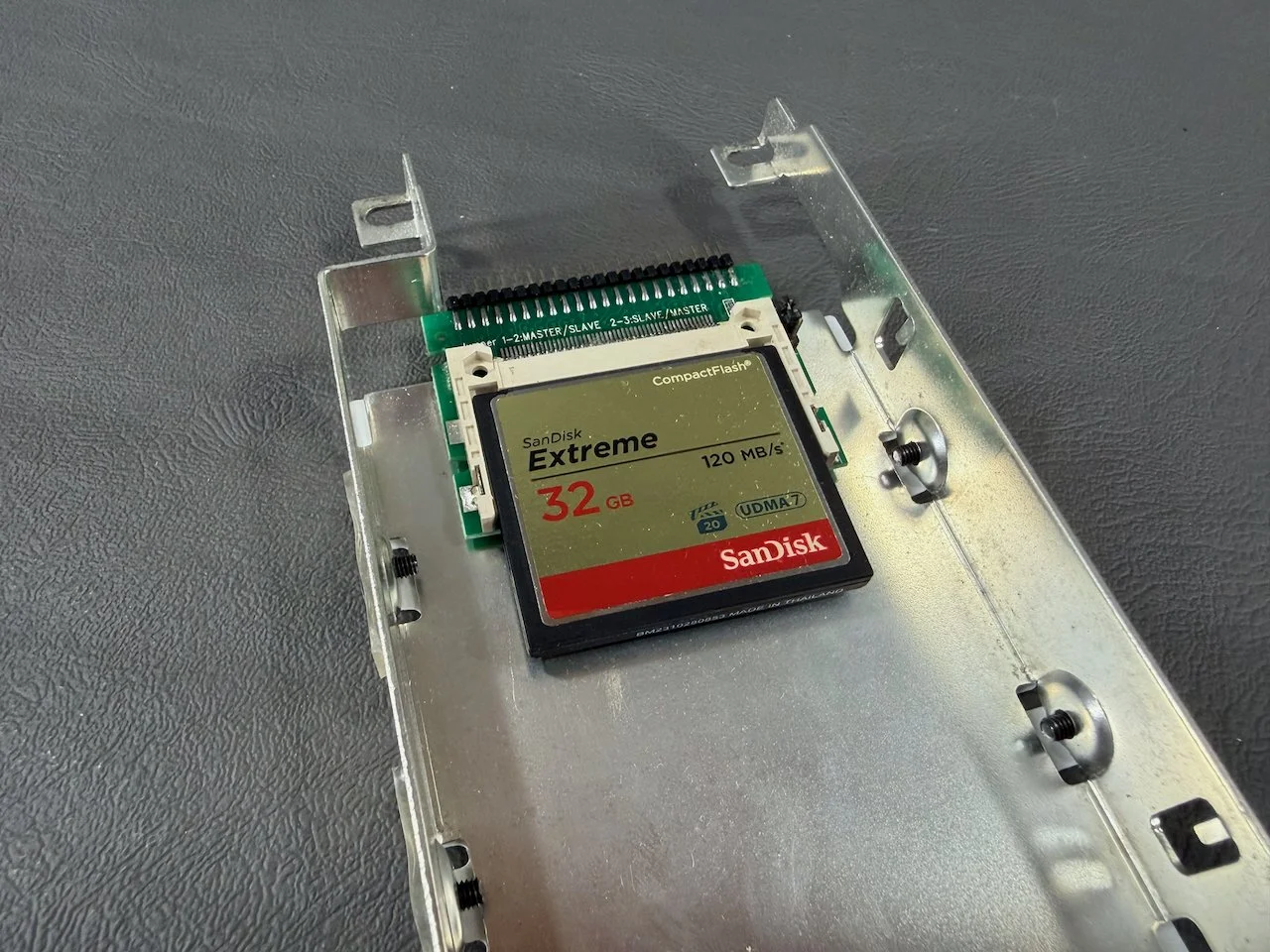Replacement of the original IDE hard disk drive with a solid-state drive (compact flash adapter)