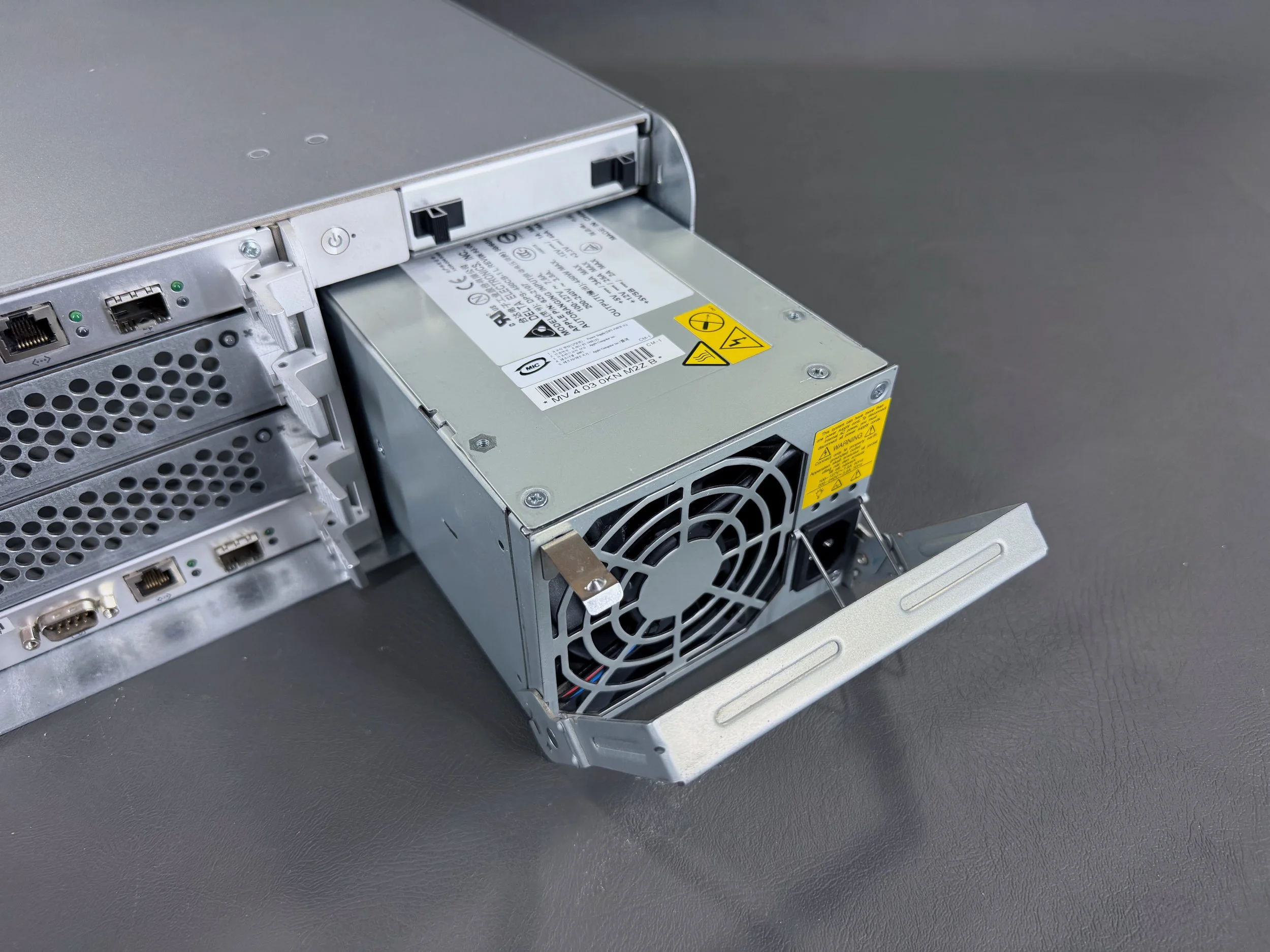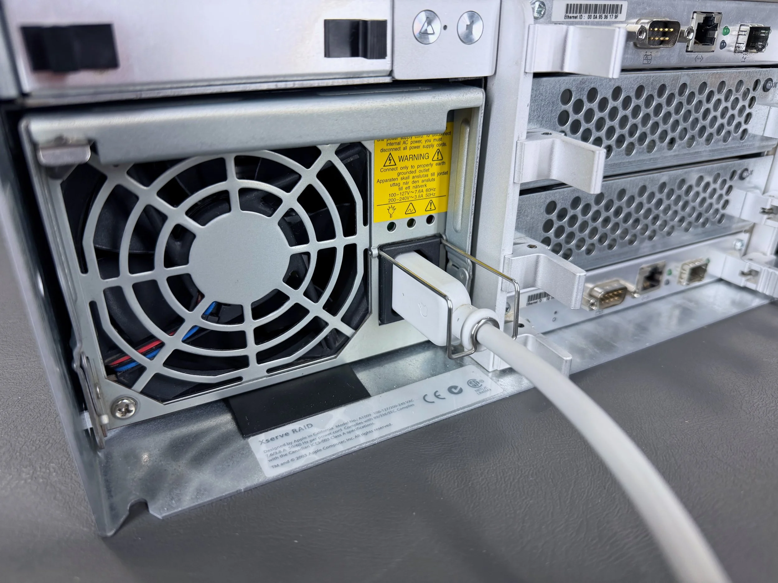 The two power cables for the Xserve RAID. They are almost identical to the ones for the “Mirrored Drive Doors” Power Mac G4s from this era, but are much longer.