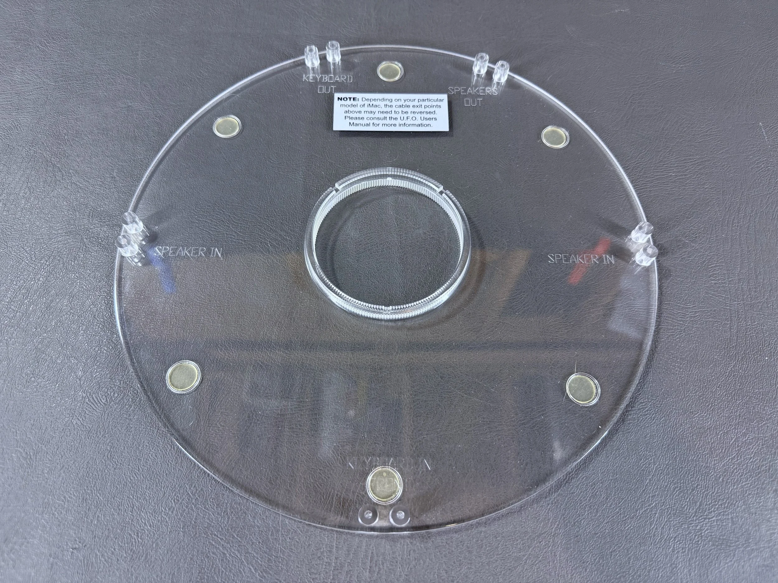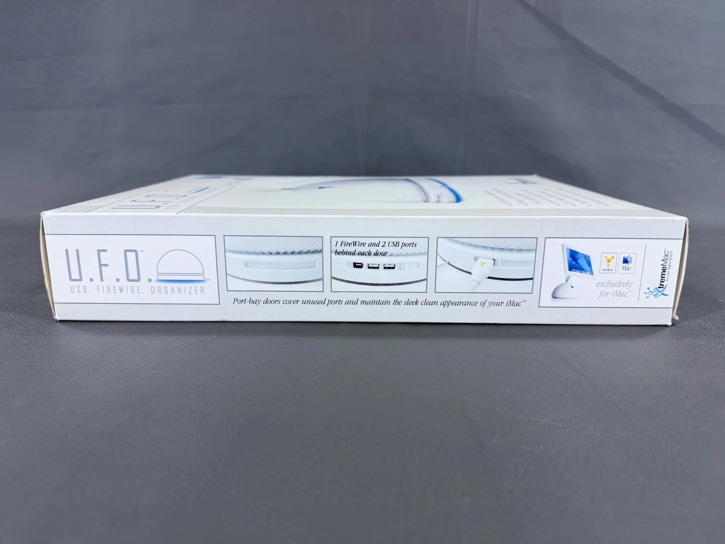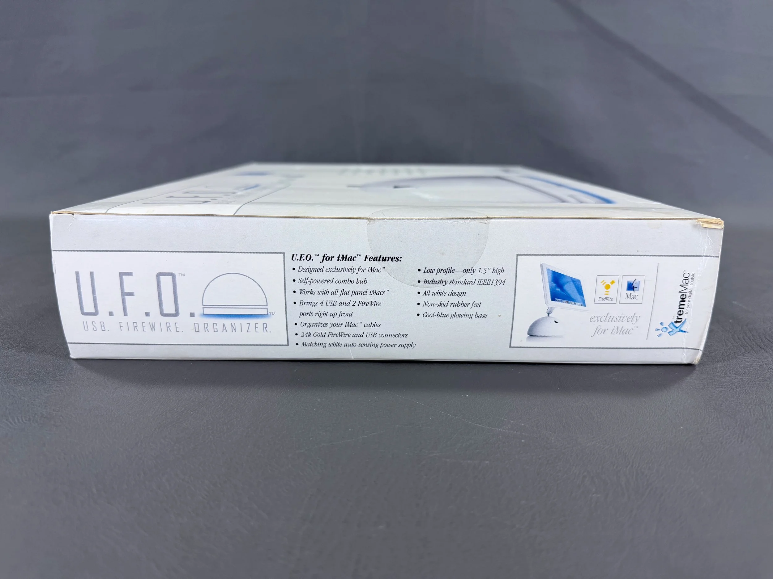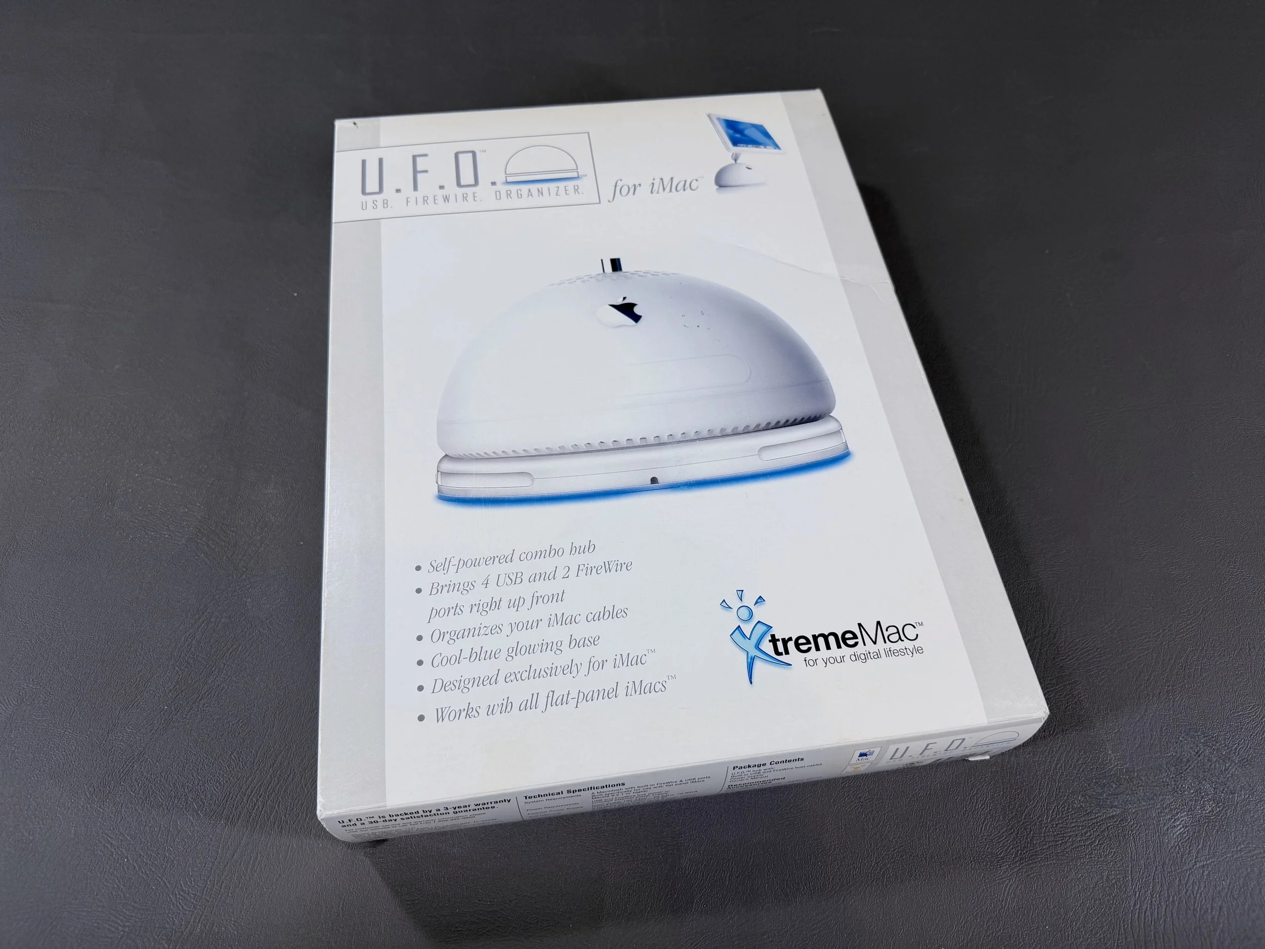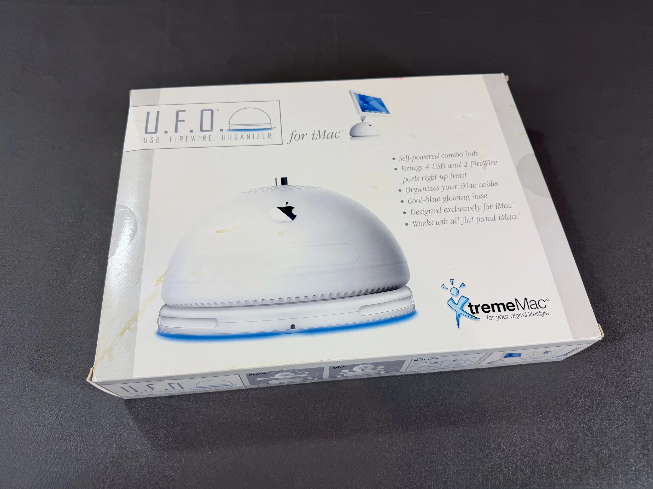 The U.F.O. is a product made by XtremeMac, a third-party manufacturer of Mac hardware accessories beginning in the early 2000s. It is a dock that was specifically designed for use with the iMac G4, providing the user with additional front-facing USB and FireWire ports.