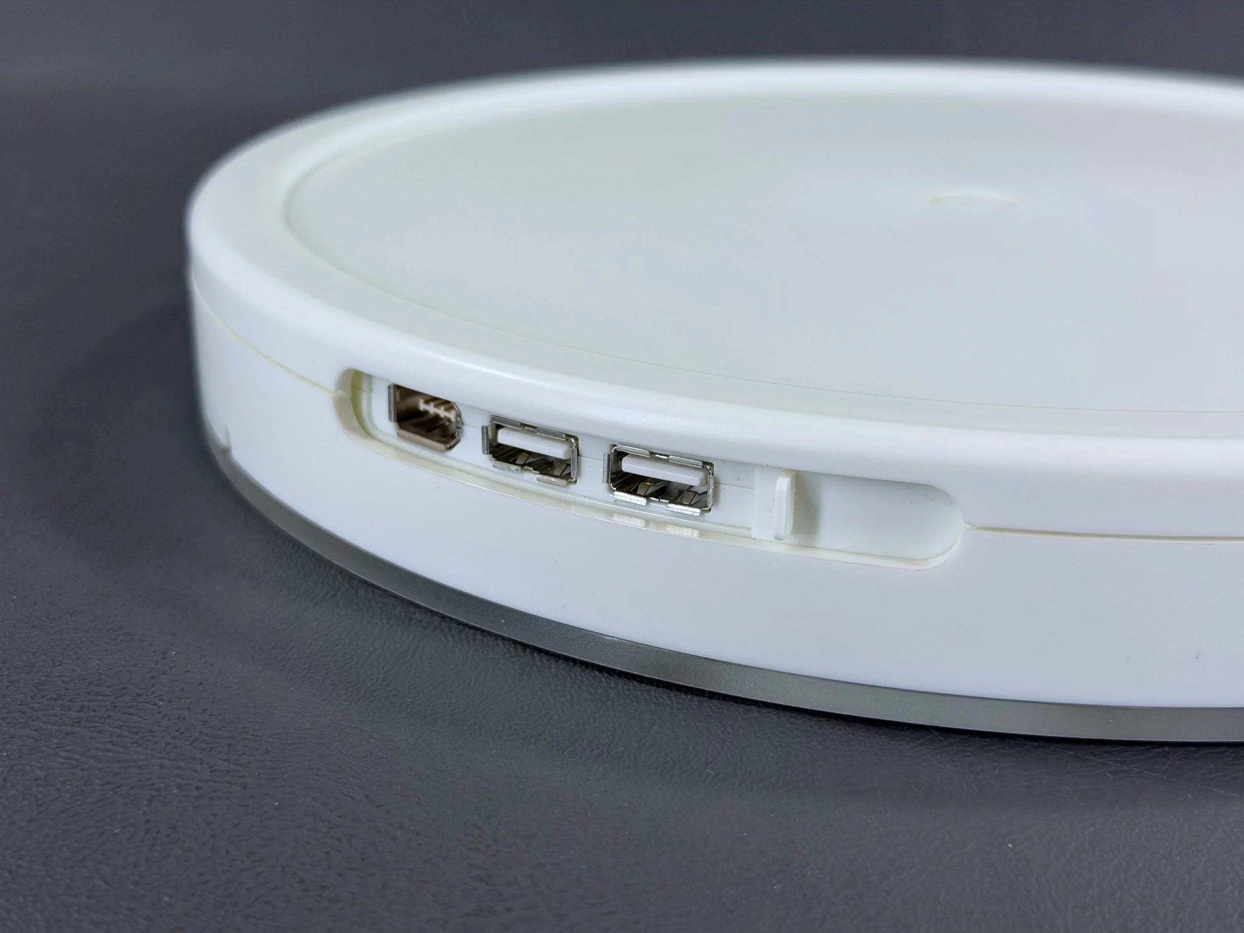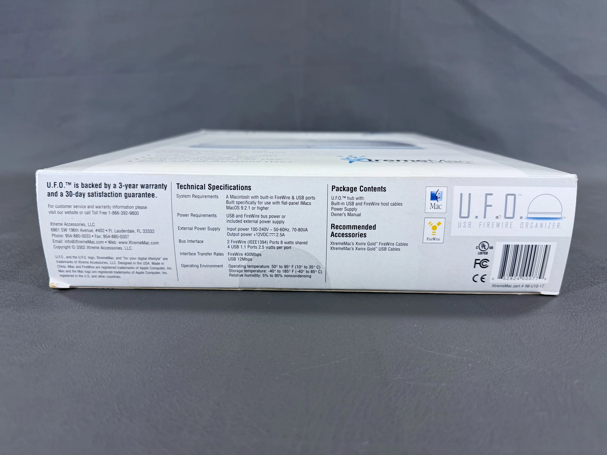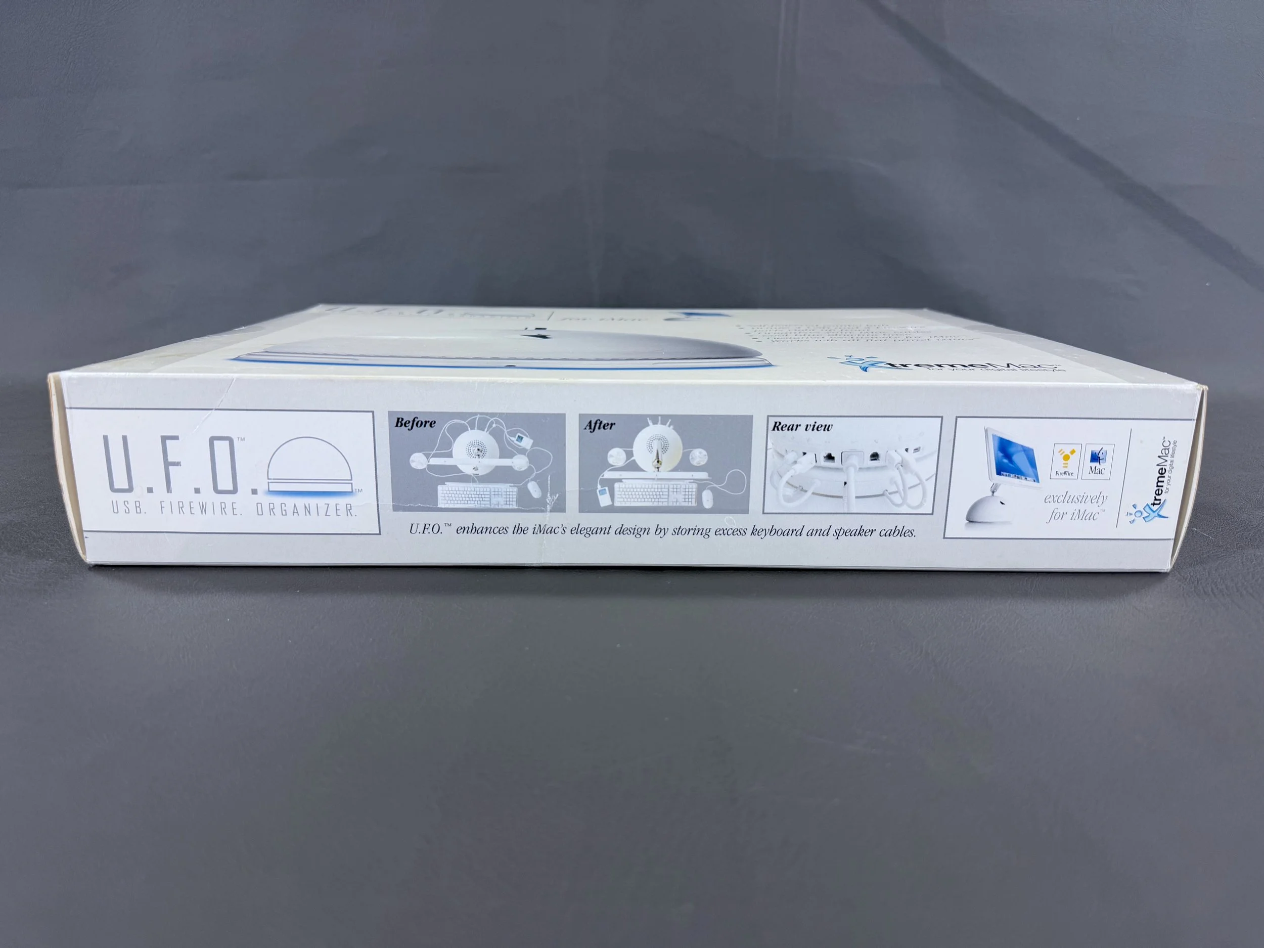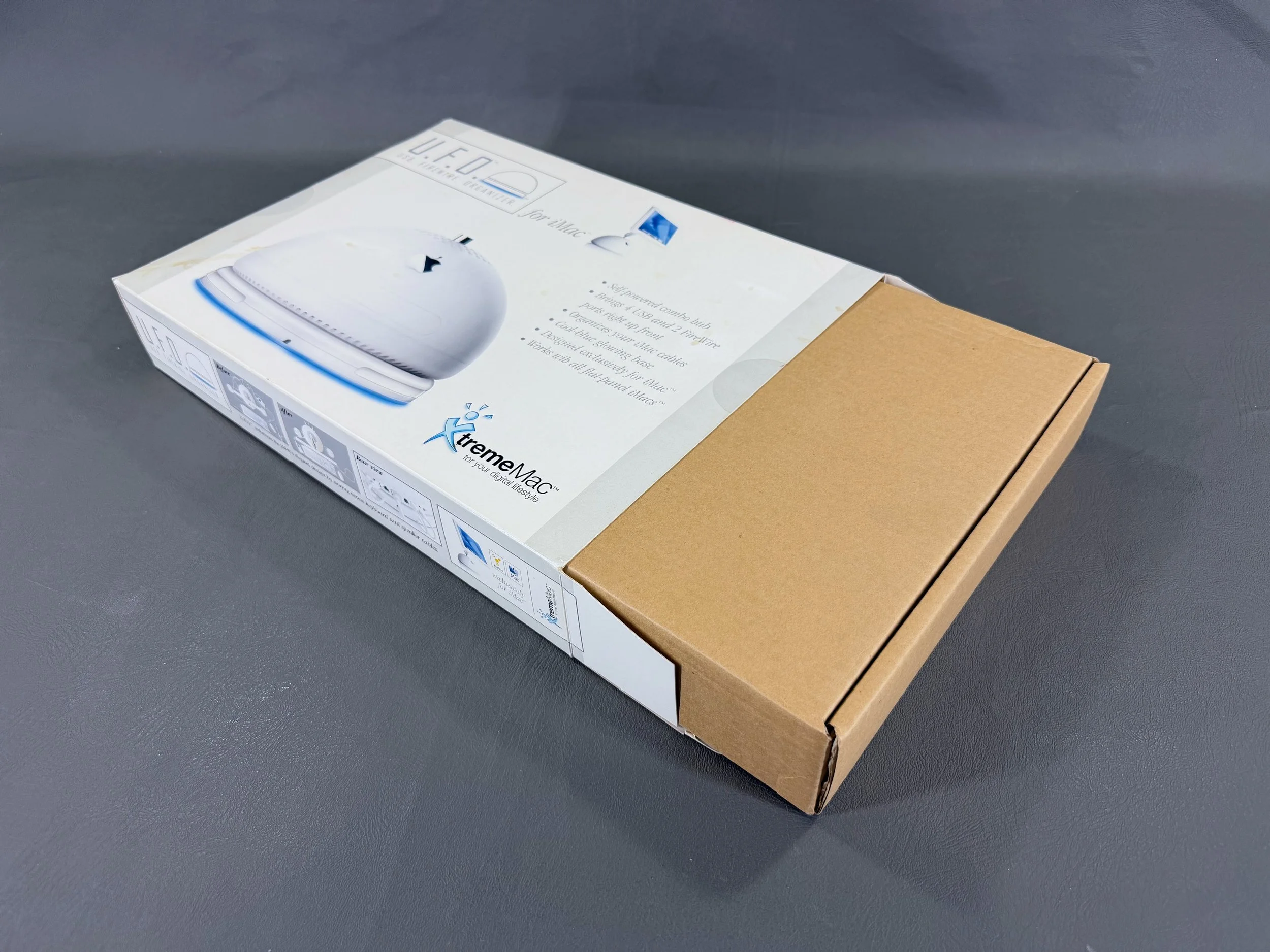 Originally launched in late 2002, the U.F.O. is one of the first products made by XtremeMac. As of mid-2025, XtremeMac is still making accessories for modern Apple products. Though their website is still around, viewing the product page for this item requires use of the Internet Archive.
