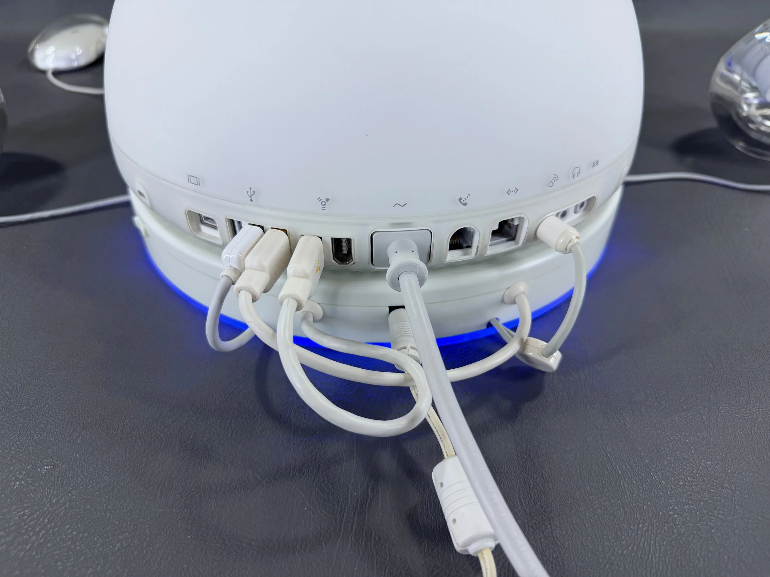 With the keyboard and the U.F.O. itself plugged in, there is still one USB and one FireWire port available on the rear of the iMac itself.